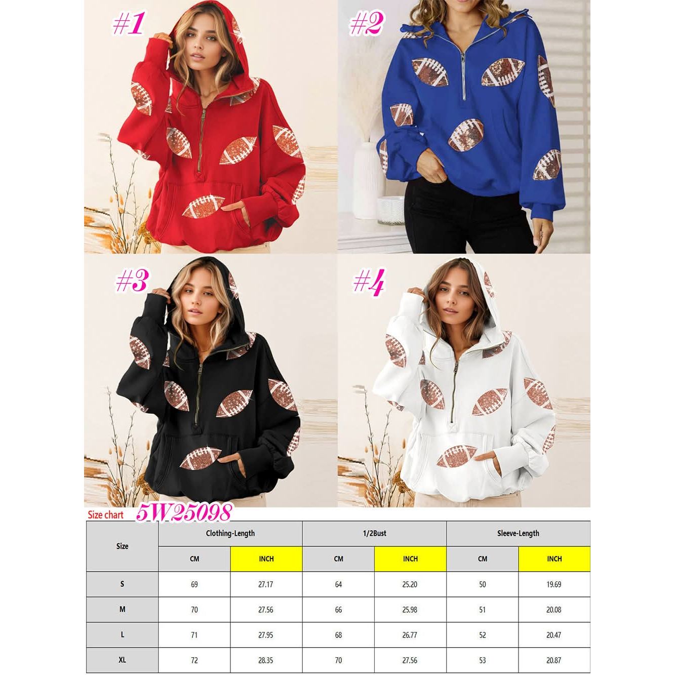 Sequin Football Patches Hoodie Pullover